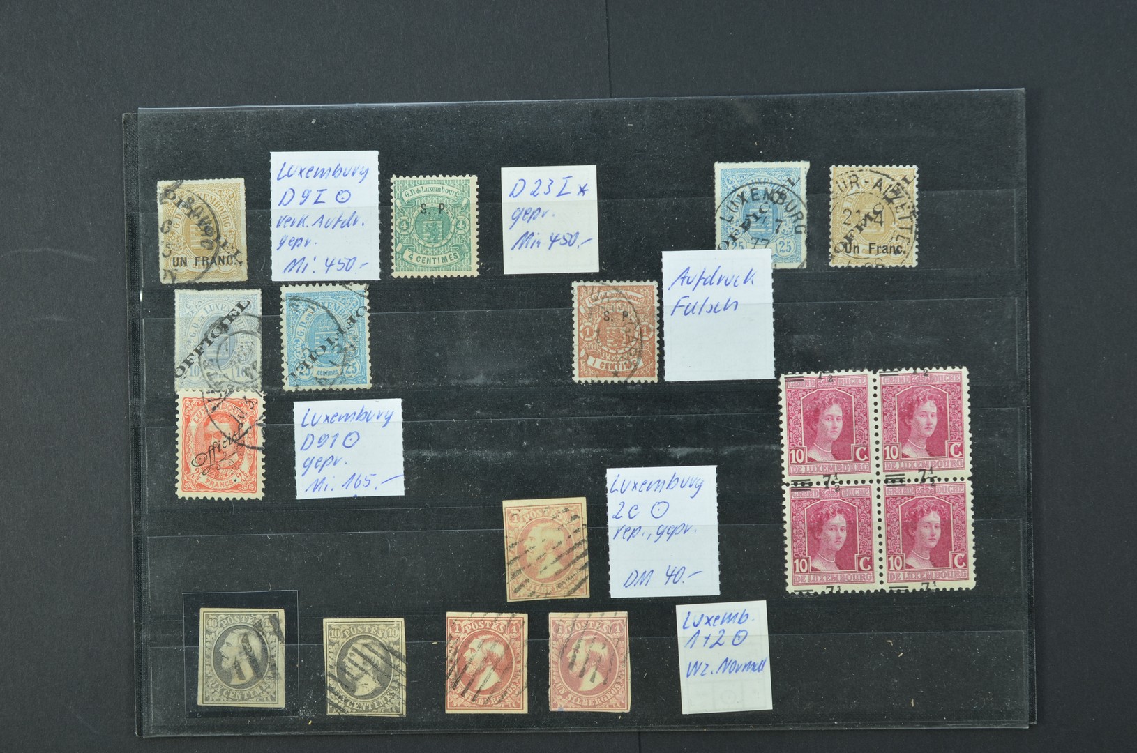 LUXEMBURG, insteekkaart met 1 (2), 2 (3), alsmede enkele Dienst-opdrukken