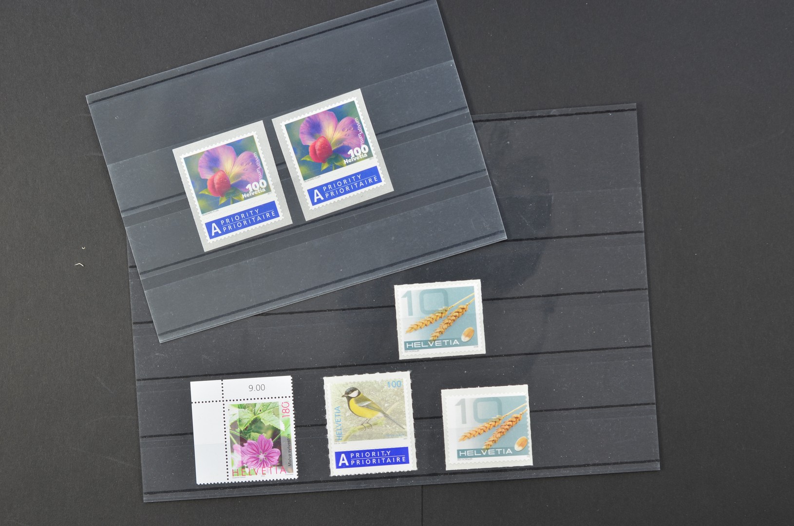 ZWITSERLAND, moderne postfrisse afwijkingen, voorzien van certificaten, wb. verschoven druk, rolstrippen met kontrole-opdruk, enz.
