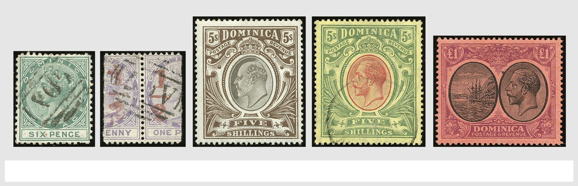 ENGELSE KOLONIËN, Dominica 1874-1966, verzameling o/*/** in insteekboek met beter materiaal o.a. S.G.27/36, 54 (2), 71/91, 99/108a, 120/34, 140/58, 162/78, etc., in meest nette kwaliteit