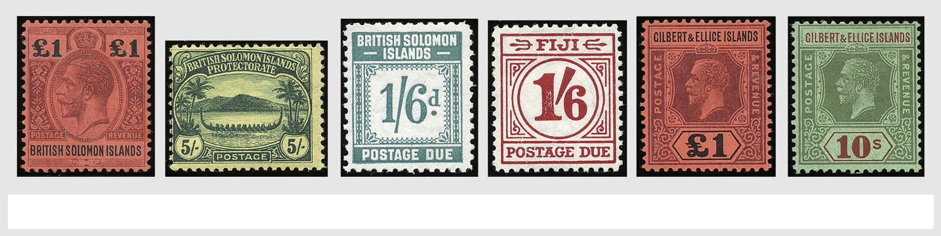 ENGELSE KOLONIËN, Fiji, Gilbert/Ellice en Solomon Islands 1870-1965, o/*/** verzameling met betere nrs. in 2 insteekboeken met o.a. Solomon S.G.1/7, 8/17, 38, 60/72, 82/96, Port 1/8, Gilbert/Ellice 1/7, 24, 35, Fiji met uitgebreid 1e emissies en Port 11/18. Hoge cat.wrd.!