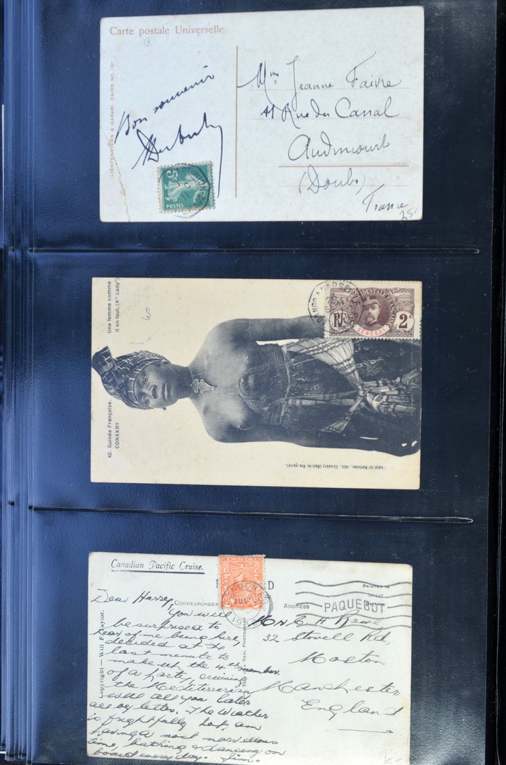 SCHEEPSPOST, verzameling van ca. 180 gevarieerde meest oudere poststukken, veel en tevens de beste ex. van Frankrijk met stempels van diverse lijnen w.o. Ligne N en Bordeaux à Buenos Aires, Paquebot, (enkel)frankeringen, bestemmingen, herkomsten, etc. in album