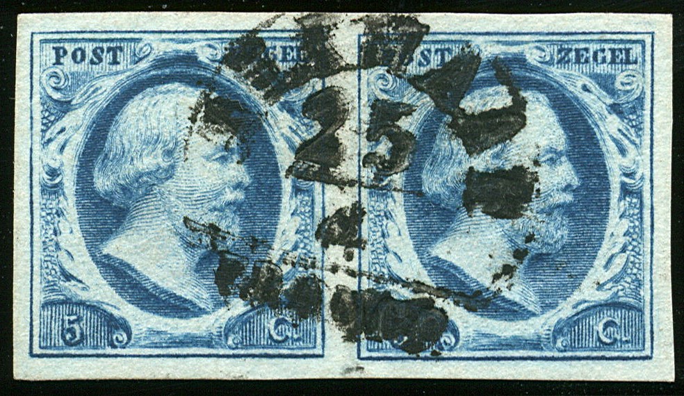 1a-Pl.I-6/7. Luxe gerand prachtpaar in diepdonkerblauw met gevlekt Alkmaar A