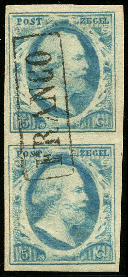 1p-Pl.V-41/46. Keurig gestempeld verticaal prachtpaar in groenblauwe nuance