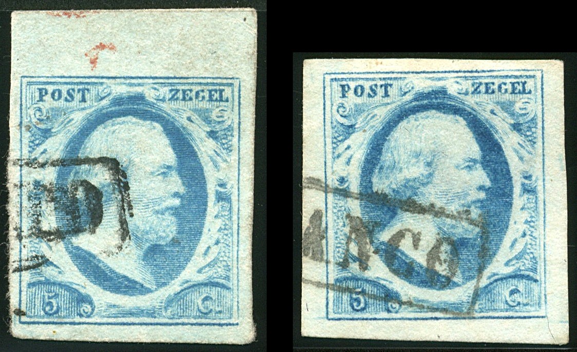 1o, 5 Cent plaat V, 3 losse ex., 11 horizontale paren en 1 verticaal paar, alle redelijk tot zeer breed gerande zegels uit het linker onder kwadrant van een plaatreconstructie, pos. 51 (Franco zonder kader), 52 (randstuk), 71, 53/54, 56/57, 57/58, 58/59, 59/60, 61/62, 62/63, 63/64 (licht groenblauwe nuance), 64/65, 66/67, 74/75 en 62/67