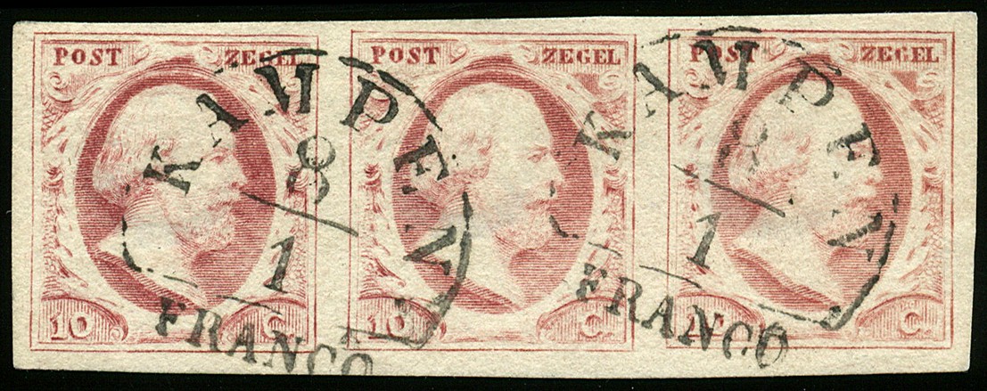 2b-Pl.I-91/93. Breed gerande prachtstrip van drie, keurig gestempeld Kampen A
