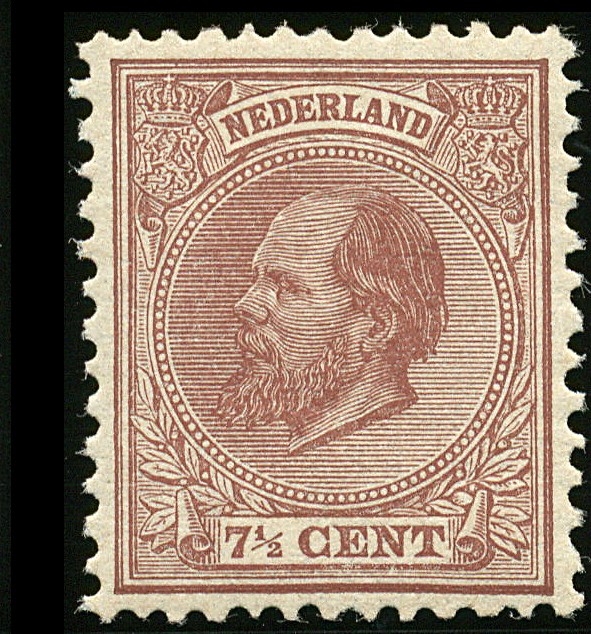 20, 7½ cent chocoladebruin, postfris prachtex. met cert. C. Muis (1999) € 375