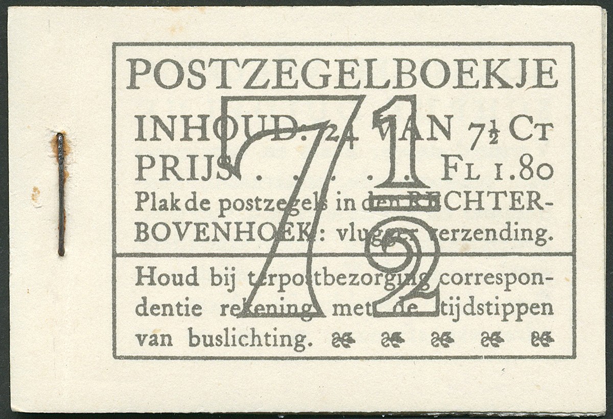 44, Fl.1,80 boekje met 4 maal 6 zegels 7½ cent rood nr. 334. € 325