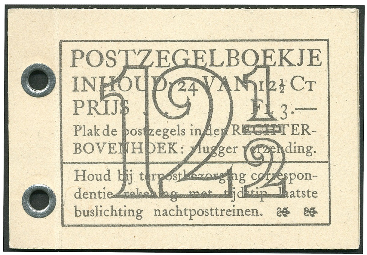 45, Fl.3,00 boekje met 4 maal 6 zegels 12½ cent donkerblauw nr. 336, kaft boekje is aan vz. opengevouwen geweest. € 400