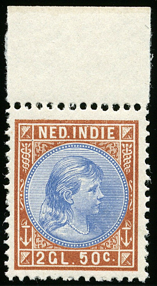 30, 2½ Gulden oranjebruin en lichtblauw, postfris prachtex. met velrand. € 650