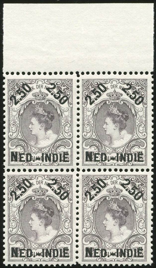 37A, 2.50 gulden Hulpuitgifte in lijntanding 11½ x 11, postfris prachtblok van vier met velrand. € 1000