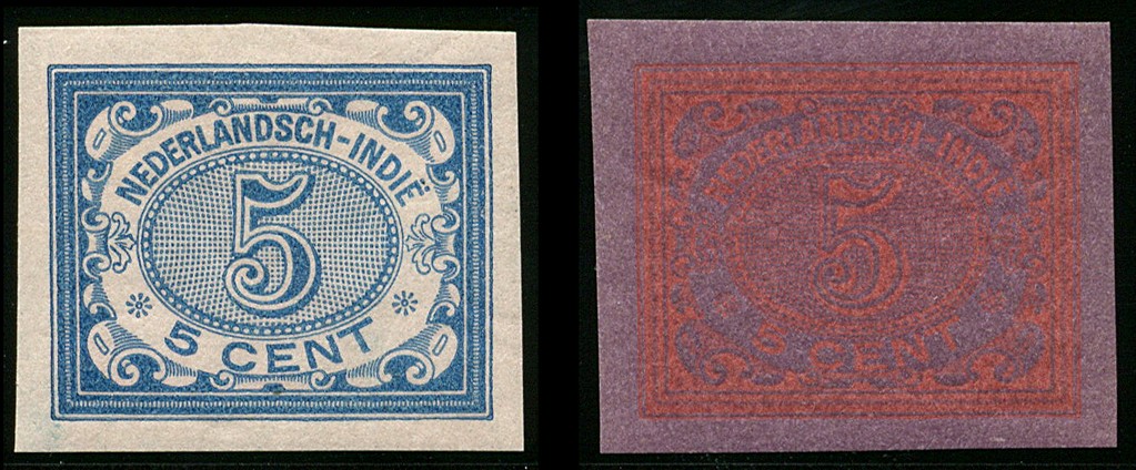 Emissie Cijfer type Vürtheim 1911. PC.58, 14 kleurproeven voor de emissie in loslatende kleuren op geprepareerd papier in de waarde 5 cent in diverse kleuren op wit en gekleurd papier, ongetand, gegomd. Maar heel weinig aangeboden! Cat. PC1988 fl. 1400+
