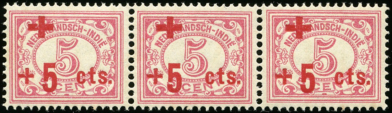 135f/136f, Rode Kruis 1 + 5 cts en 5 + 5 cts met opdrukafwijking ´Afstand tussen kruis en cijfer 1 mm i.p.v. 2 mm´, beide zegels tussen normale ex., postfrisse prachtex. (az. rechter zegel nr. 135 bruin tandje). Ex Poulie. € 550
