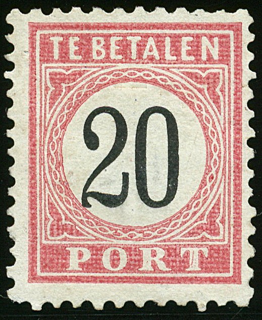 Port 9CI, 20 cent type I in Kt.11½ x 12, ongebruikt prachtex. zonder gom. zeer zeldzaam zegel met attest Moeijes (1989) € 1000
