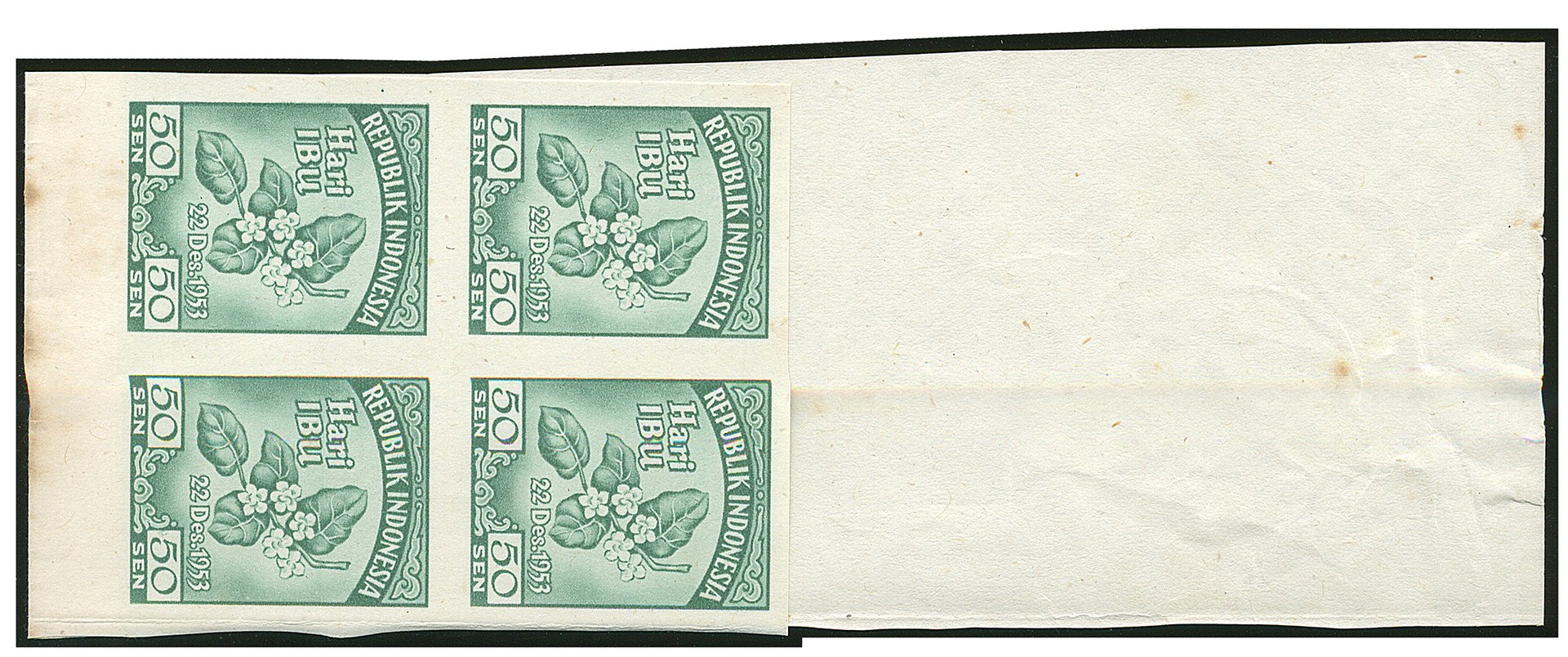 KPI.118A, Moederdag 1953, ongetand en ongegomd in randblok van vier. Rp. 6.000.000
