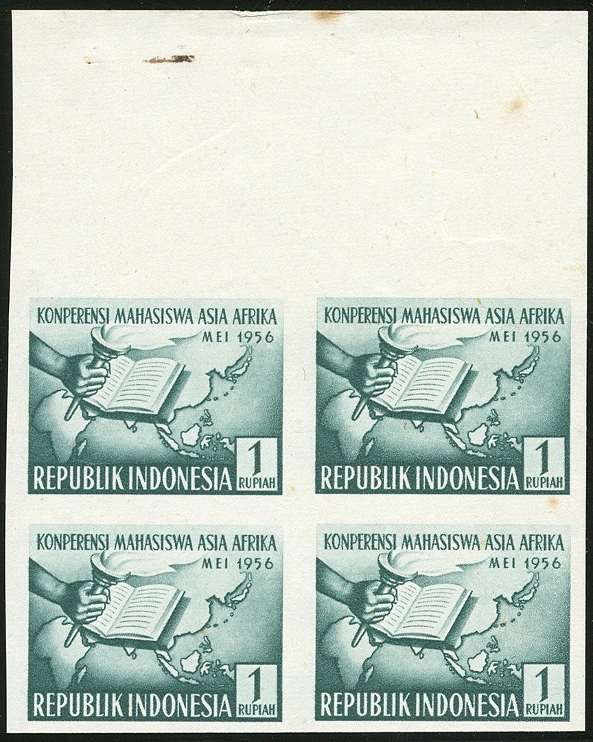 KPI.161A/163A, Studentenconferentie Azië-Afrika 1956, ongetand en ongegomd in randblokken van vier. Rp. 16.000.000