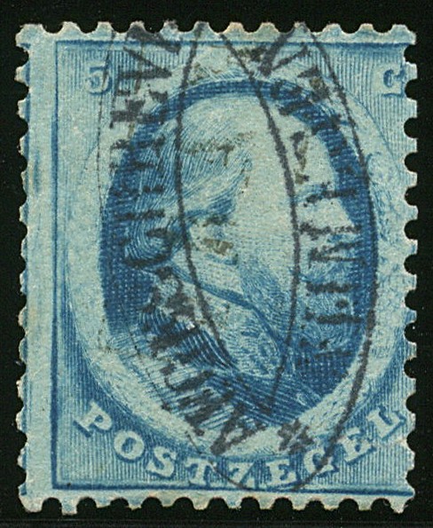 Ovaalstempel ´Afgeschreven/Nijmegen´ op 5 cent nr. 4. Prachtex. met bijzonder mooie afst. Zie Cleij p.193