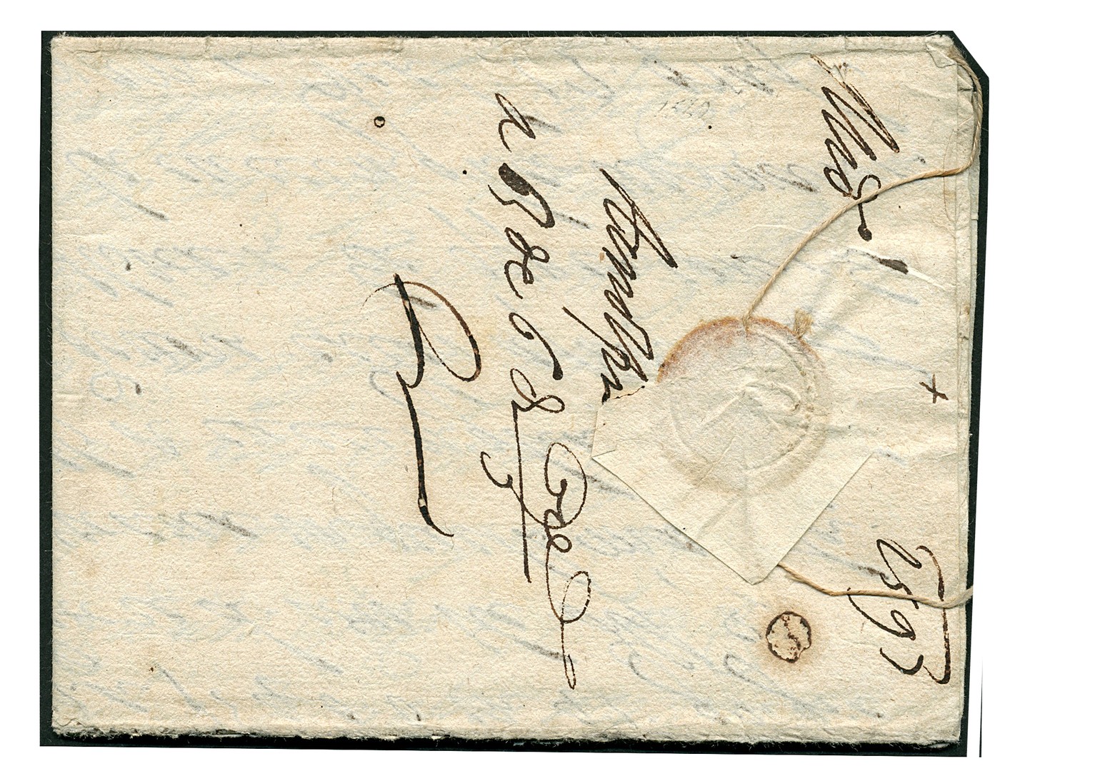 Corsini. Cpl. prachtbrief van Middelburg 30-8-1593, gesloten met een koordje, naar Bartolomeus Corsini te Londen, met op vz. geschreven ´G1´ (= 1 Groot = ½ stuiver). Zeldzaam!