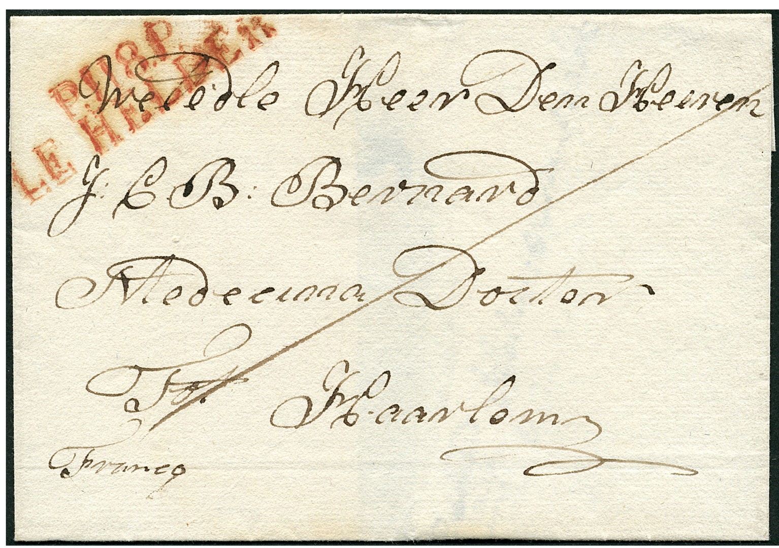 Departementsstempel ´P.118.P./Le Helder´ in rood op zeer frisse gedateerde briefomslag van 6-12-1814 naar Haarlem