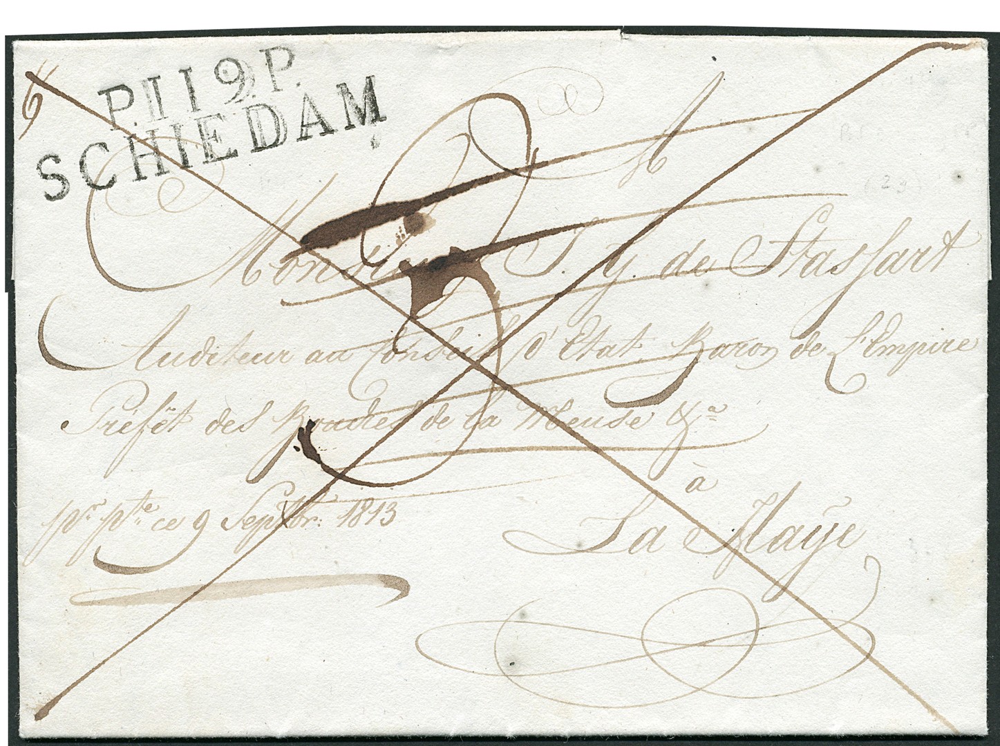 Departementsstempel ´P.119.P./SCHIEDAM´ op zeer frisse, complete vouwbrief van 9-9-1813 naar Den Haag