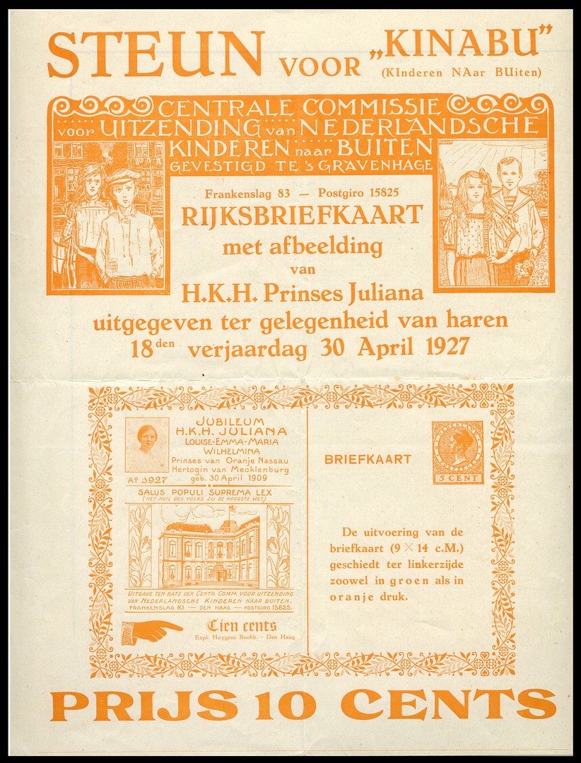 Raambiljet in oranje druk voor KINABU-briefkaarten uit 1927