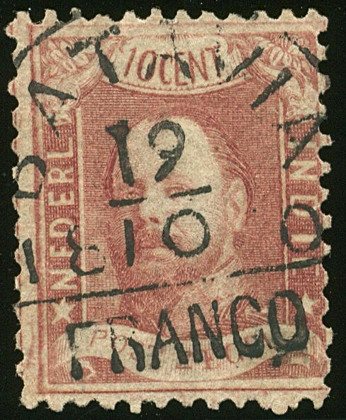 Halfrond-franco BATAVIA (letters wijd uit elkaar) op 10c nr. 2. Vrijwel prachtex. met complete afst. met merkwaardig maar zeer duidelijk jaarcijfer 0 (misschien een kopstaande 70?)