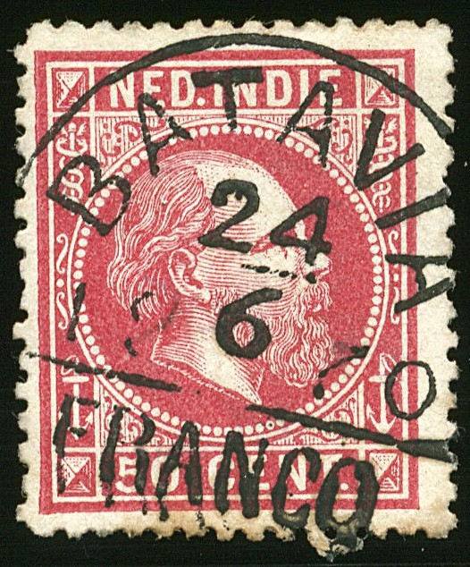 Halfrond-franco BATAVIA op 50c nr. 15A. Twee prachtex. met superbe afst. uit 1870 van 22-3 resp. 24-6