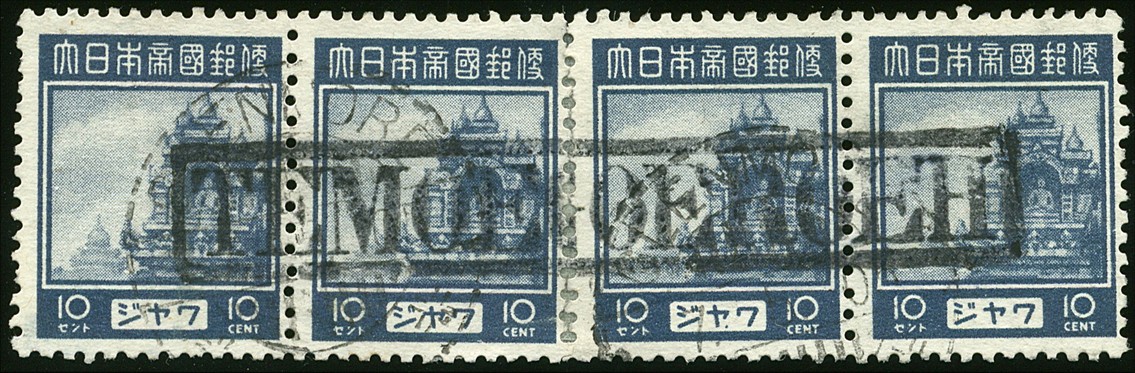 Java. Train-halt postmarks. Djeroeklegi (RR) on 07 (2 copies affixed together), Koebangkangkoeng (RR) on 07 in pair, Kraton (RR) on 70 in strip of four, Langen (RR) with date 24 MAY 03 on 04, Lebeng on 70, Temoegoeroeh (R) on 07 (2 pairs affixed together) and Tjikadongdong (RR) on 70 in pair