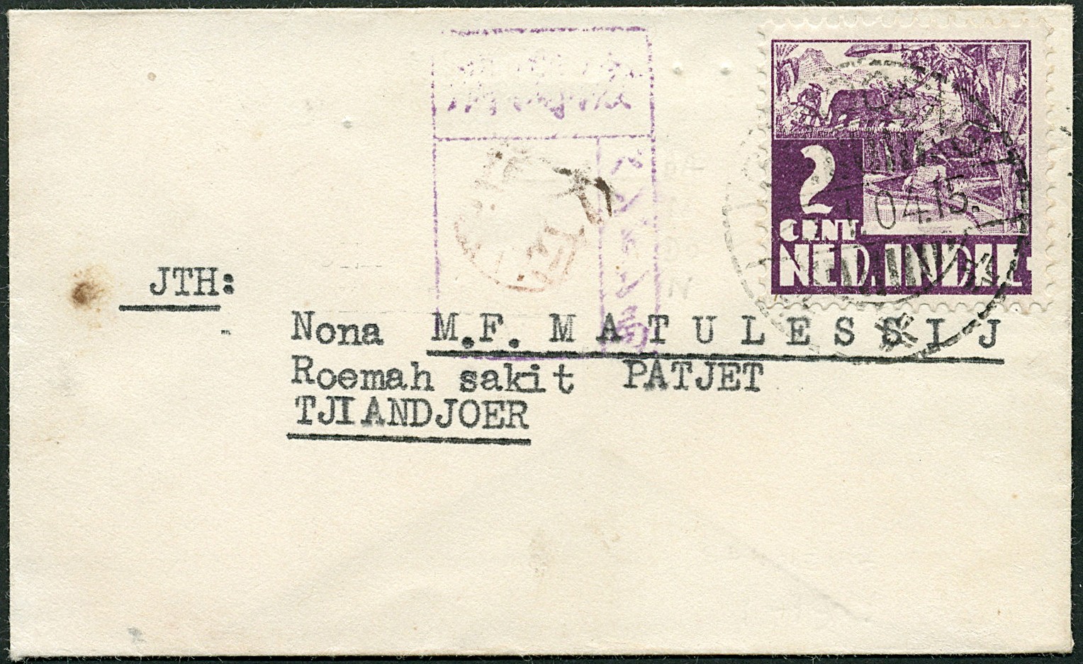 Java. 2 Cent Kreisler no. 16b on censored small business card envelope from Bandoeng 25.1.04 to a hospital in Patjet near Tjiandjoer