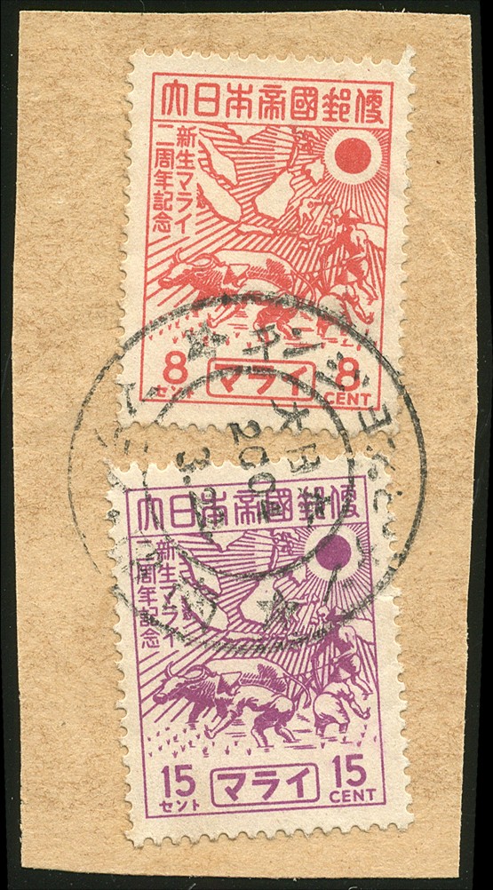 Sumatra. Riouw. 8 Cent and 15c commemoratives nos. M43/44 on piece cancelled Tandjong Pinang 2604 3.22. Extremely rare use in the Neth. East Indies. ? 300