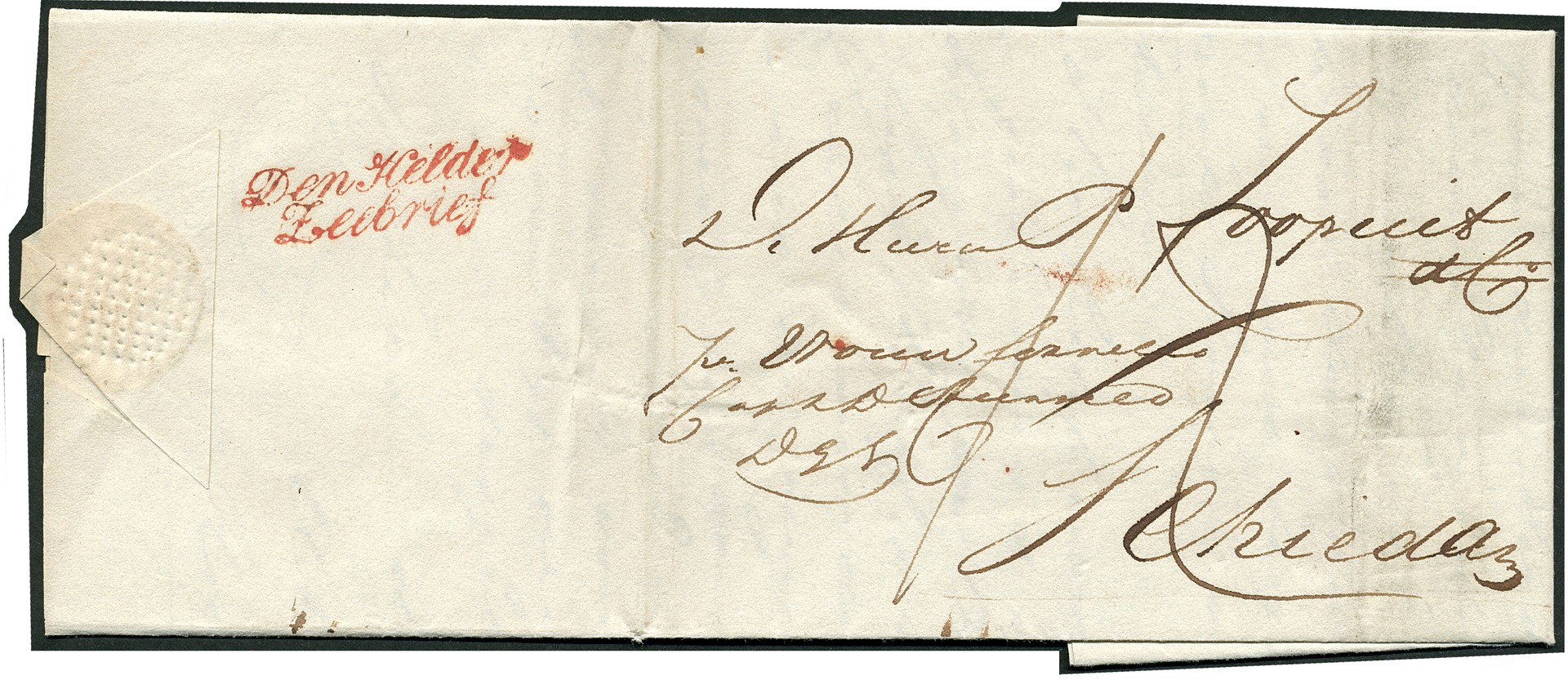 Cpl. vouwbrief van Suriname 21-7-1816 over Den Helder naar Schiedam, genoteerde aankomst 5-10, met op az. luxe afdruk Zeebriefstempel (PEP2.Z135), port 12 stuivers
