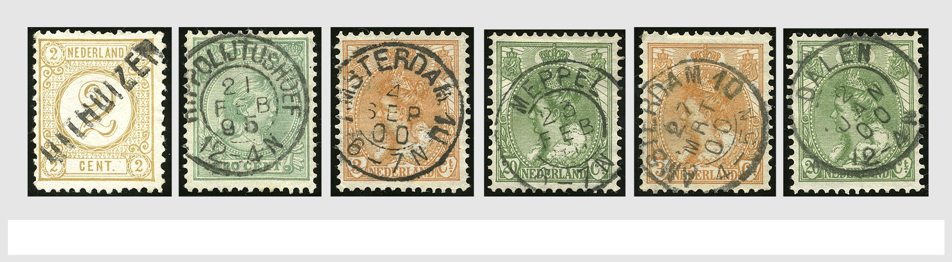 Punt-, Naam-, Kleinrond-, Drukwerkrol-, Rubber- e.a. afstempelingen alsmede Perfins, wb. betere stempels