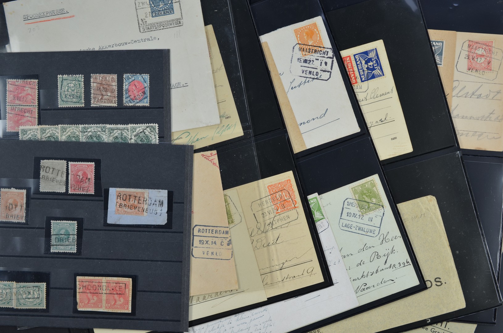 POSTHISTORIE, Spoorwegtrajectstempels in rechthoek (´blokstempels´ Vellinga model D), 32 poststukken w.o. met aardige (enkel)frankeringen en op enige losse zegels, ook enige haltestempels en ´Rotterdam/[Brievenbus]´