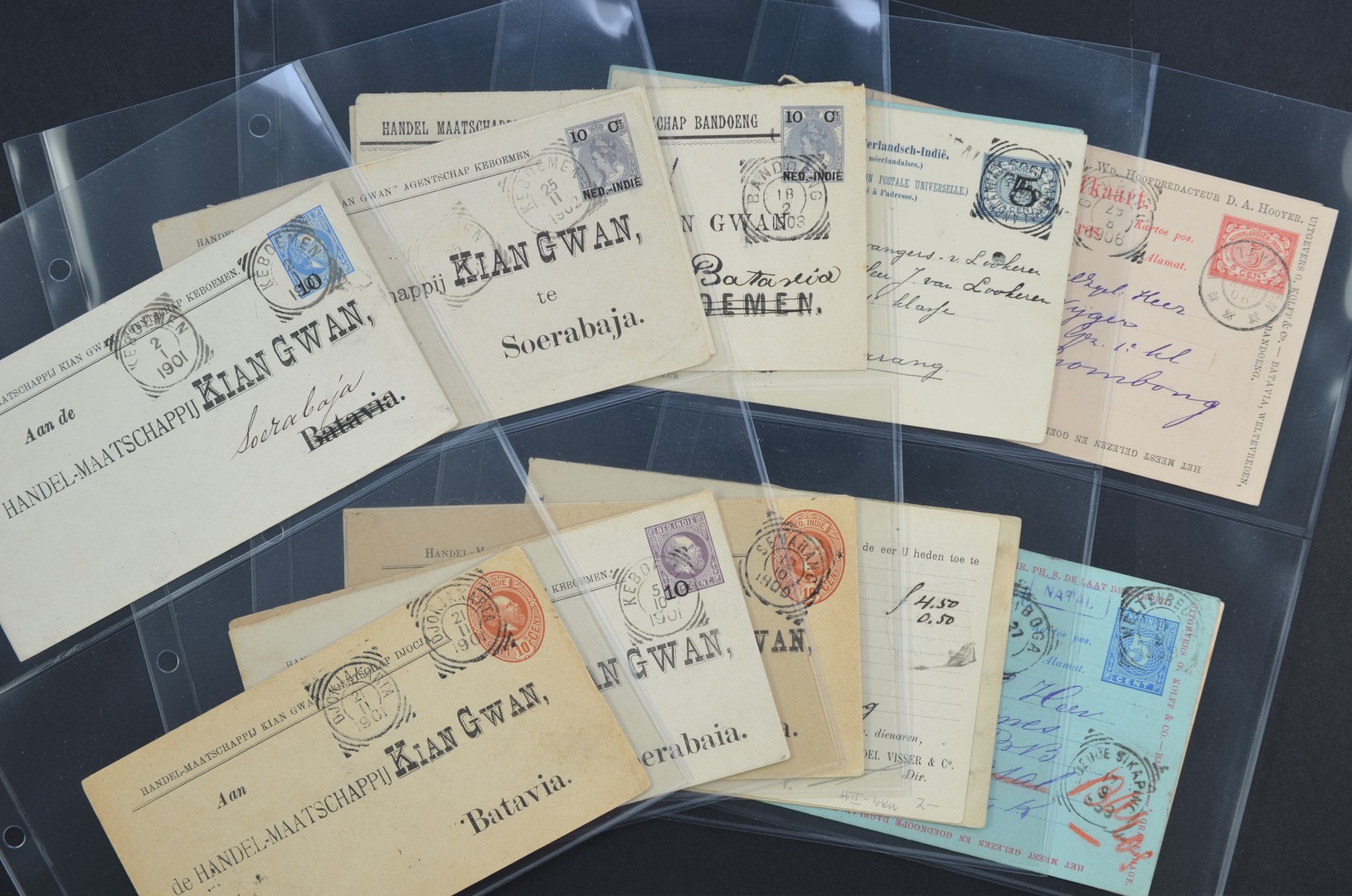 NED.- INDIË POSTHISTORIE, 30 verzonden particulier bedrukte postwaardestukken 1892-1906 w.o. verschillende typen Kian Gwan, Van Dorp, Hotel des Indes, Bataviaasch Nieuwsblad, etc.