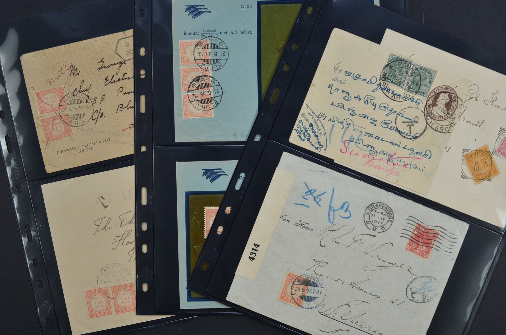 NED.- INDIË POSTHISTORIE, 20 betere vooroorlogse ontoereikend gefrankeerde poststukken w.o. uit Nederland (3), India (2) en Zweden (1). Interessant!