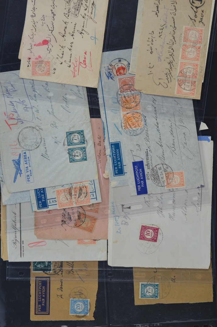 NED.- INDIË POSTHISTORIE, 14 ontoereikend gefrankeerde poststukken w.o. uit India en 5 voorzijden 1923-1949 voorzien van portzegels