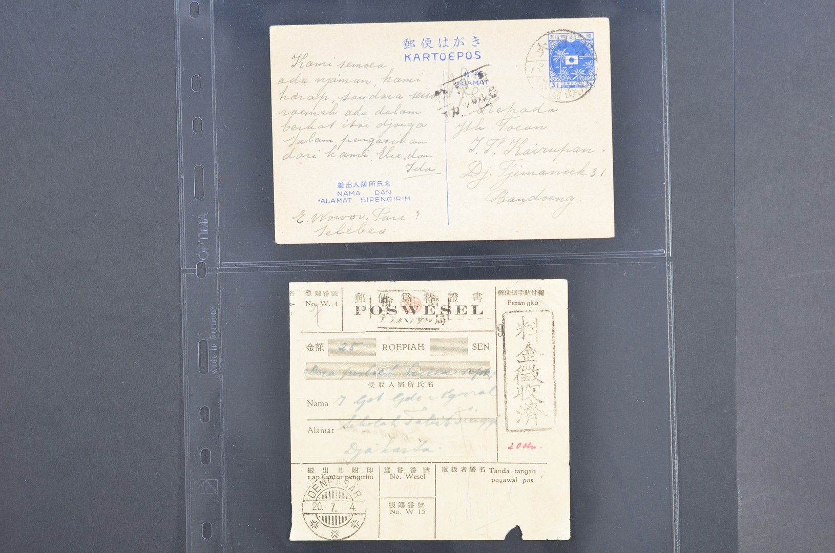 JAPANESE OCCUPATION 1942-1945, Celebes postcard Bu.284 used (thin spot), and Bali money order with Postage Paid mark Bu.JB62 type F