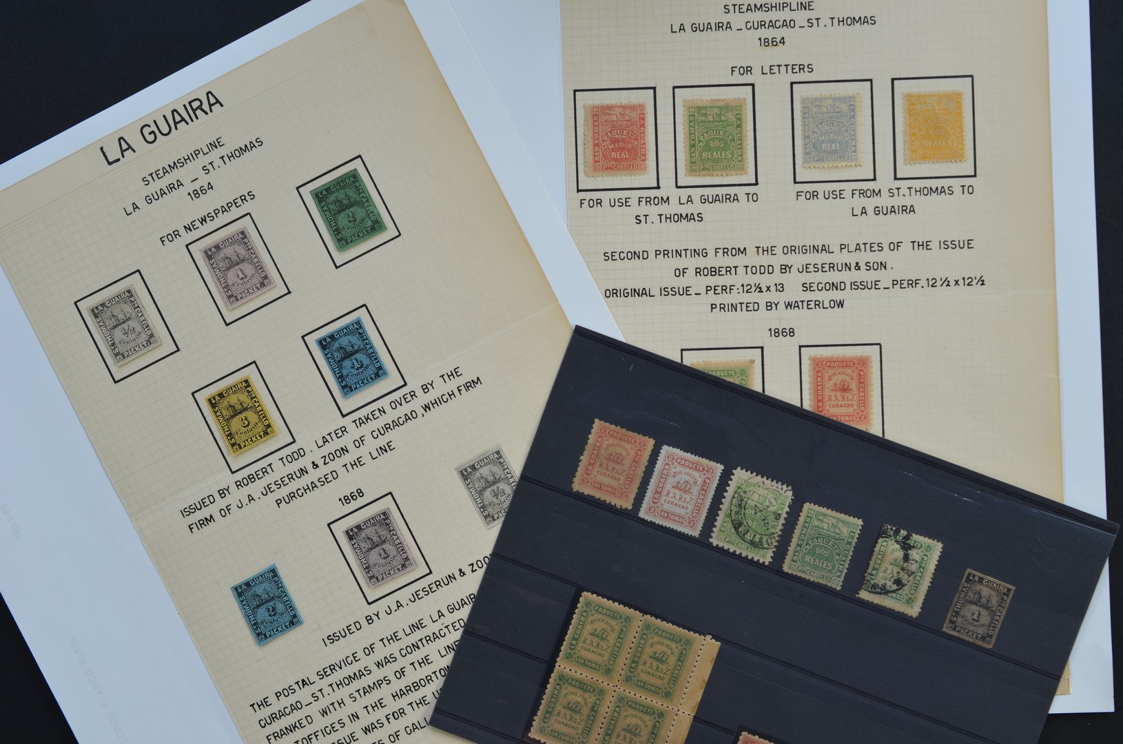 CURAÇAO, La Guaira, collectie van 14 ongebruikte zegels, op 2 albumbladen