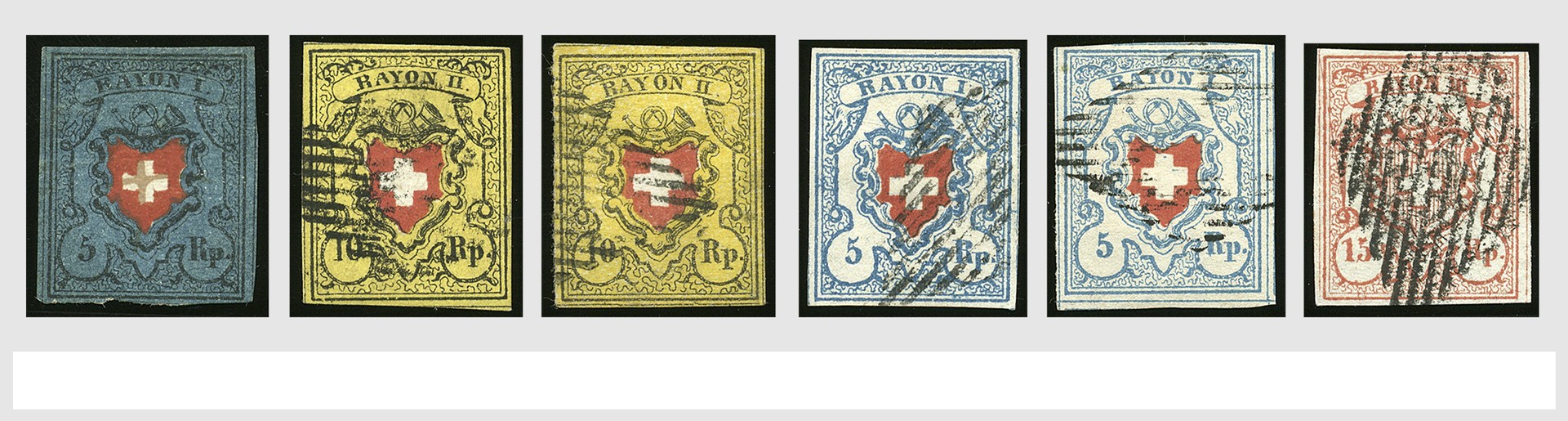 ZWITSERLAND, Michel 7II, 8II (2), 9II (2) en 10, goed gerande prachtex. € 1650