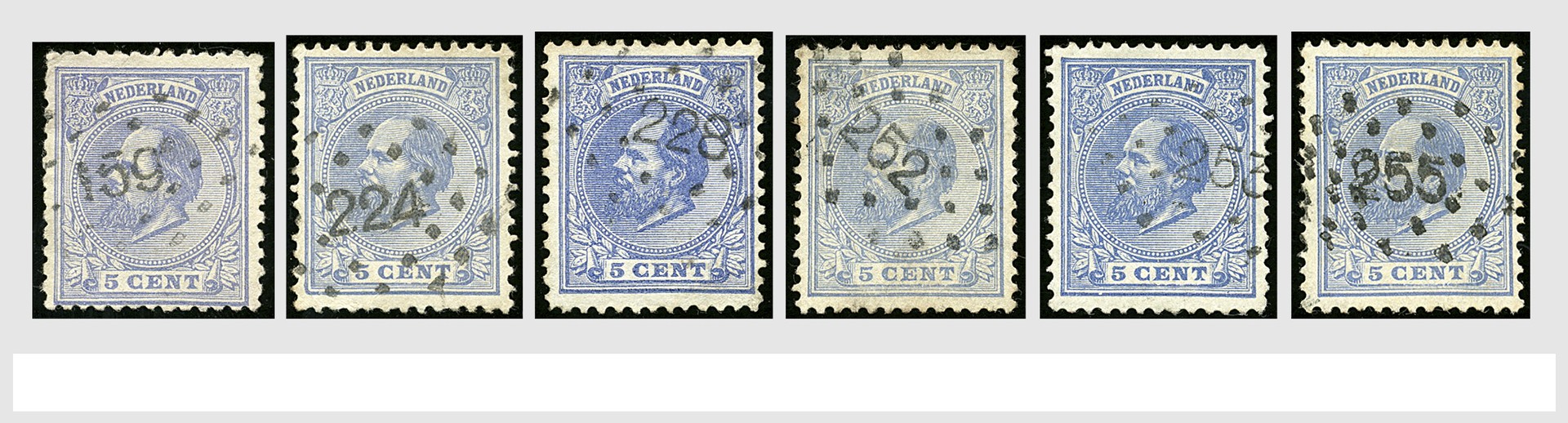 PUNTSTEMPELS, tussen nr. 1 en 256 op emissie 1872 in speciaal 'Mercedes' album