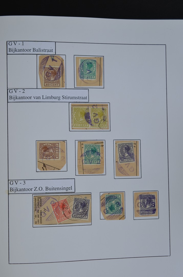 GUMMISTEMPELS, uitgebreide verzameling op zegels type Veth op knipsels, goed gedocumenteerd beschreven op albumbladen in Davo-album