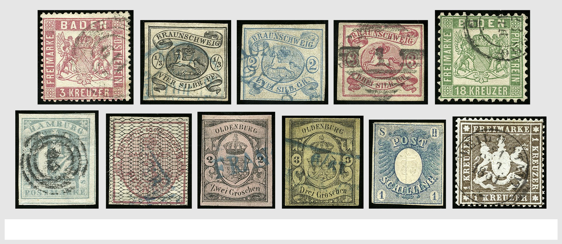 OUD DUITSE STATEN, o/* kwalitatief mooie verzameling in klemband, met talrijke betere nrs. o.a. Baden 16, 21, Braunschweig 2, 5, 12, Hamburg 2, Hannover, 13, Oldenburg 6/8, Pruisen 20/21, Schleswig 1, Württemberg 16, etc. Mooie koop!