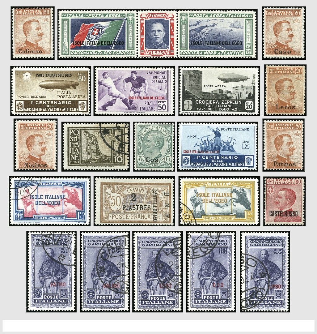 EGEÏSCHE EILANDEN 1912-1940, mooie verzameling o/*/** van vrijwel alle gebieden in ringband met talrijke goede nrs. en series, vele briefstukjes en een aantal brieven. Zelden zo aangeboden!
