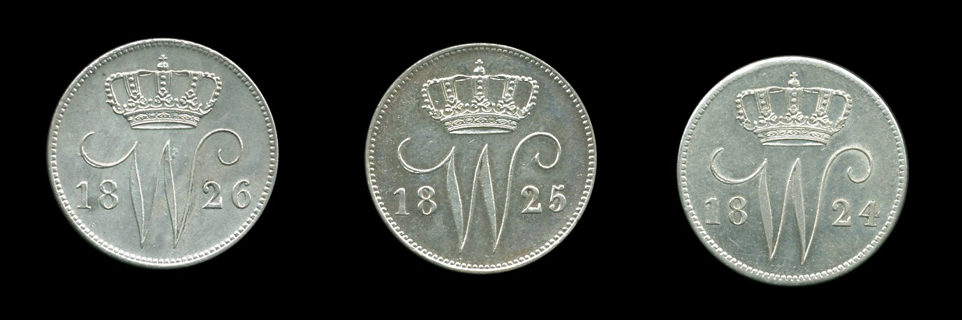 NEDERLAND, Willem I, 25 cent 1824 Br. (Sch.295) pr., 25 cent 1825 (Sch.289)pr. en 25 cent 1826 Br. (Sch.297) pr.