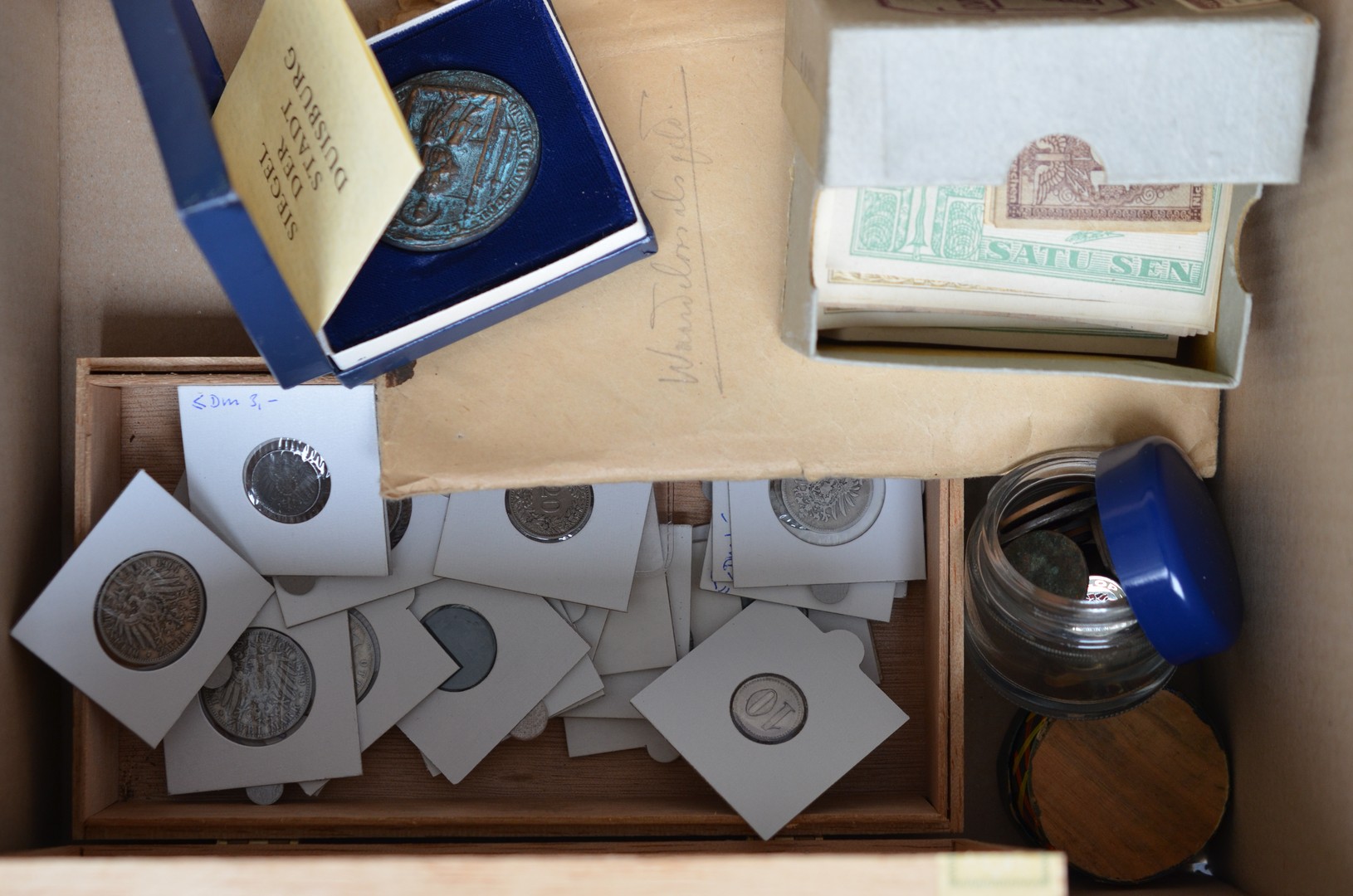 WERELD, diversen waarbij gouden 20 Franc Napoleon III 1858, enkele 2 Mark-stukken, iets noodgeld, etc.