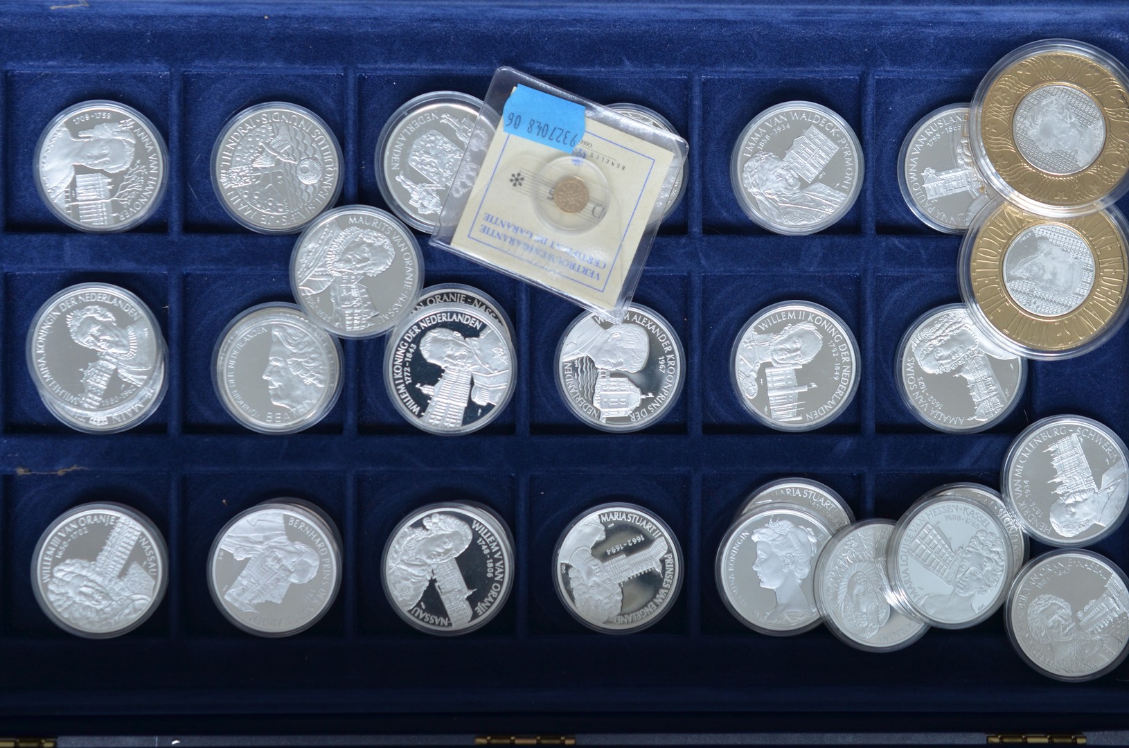 NEDERLAND, 3 albums Juliana en Beatrix waarbij Zilveren guldens, rijksdaalders, 10 guldens en 50 guldens alsmede cassette "Oranje Boven" in sterling Zilver, alsmede penning "Europa kalender"