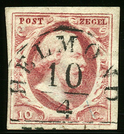 HELMOND A (EY.600) op 10 cent nr. 2b-Pl.I-63. Linksonder wat smal, overigens prima gerande zegel met prachtige afst.