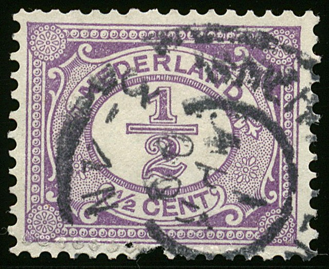 50, ½ cent met Bossche tanding, afgestempeld ´sHertogenbosch 1-4-1909. Schaars!