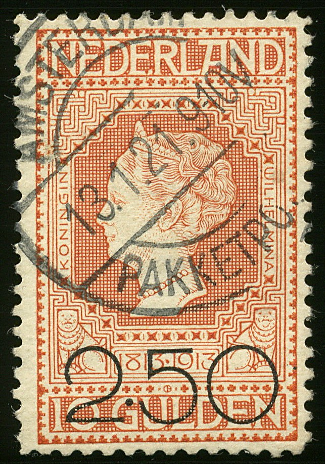 105P, Rijksdaalderopdruk met plaatfout ´Gebroken E´, gebruikt prachtex. € 230