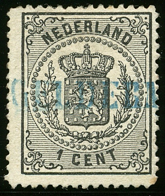 Naamstempel GELDERMALSEN in blauw op 1 cent zwart nr.14, prachtex.