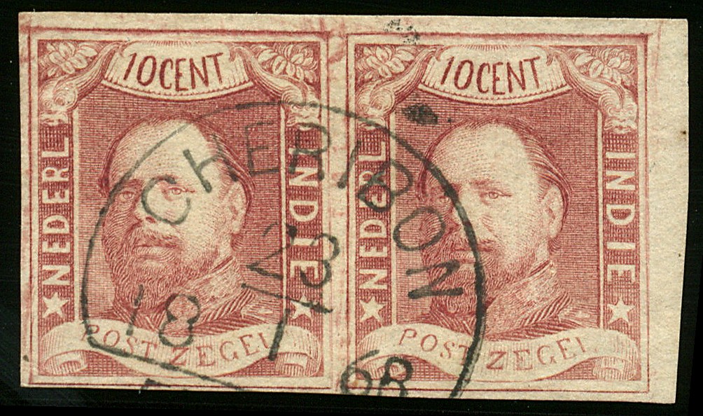 Halfrond-franco CHERIBON op 10c nr. 1. Pracht randpaar met bijzonder mooie afst.